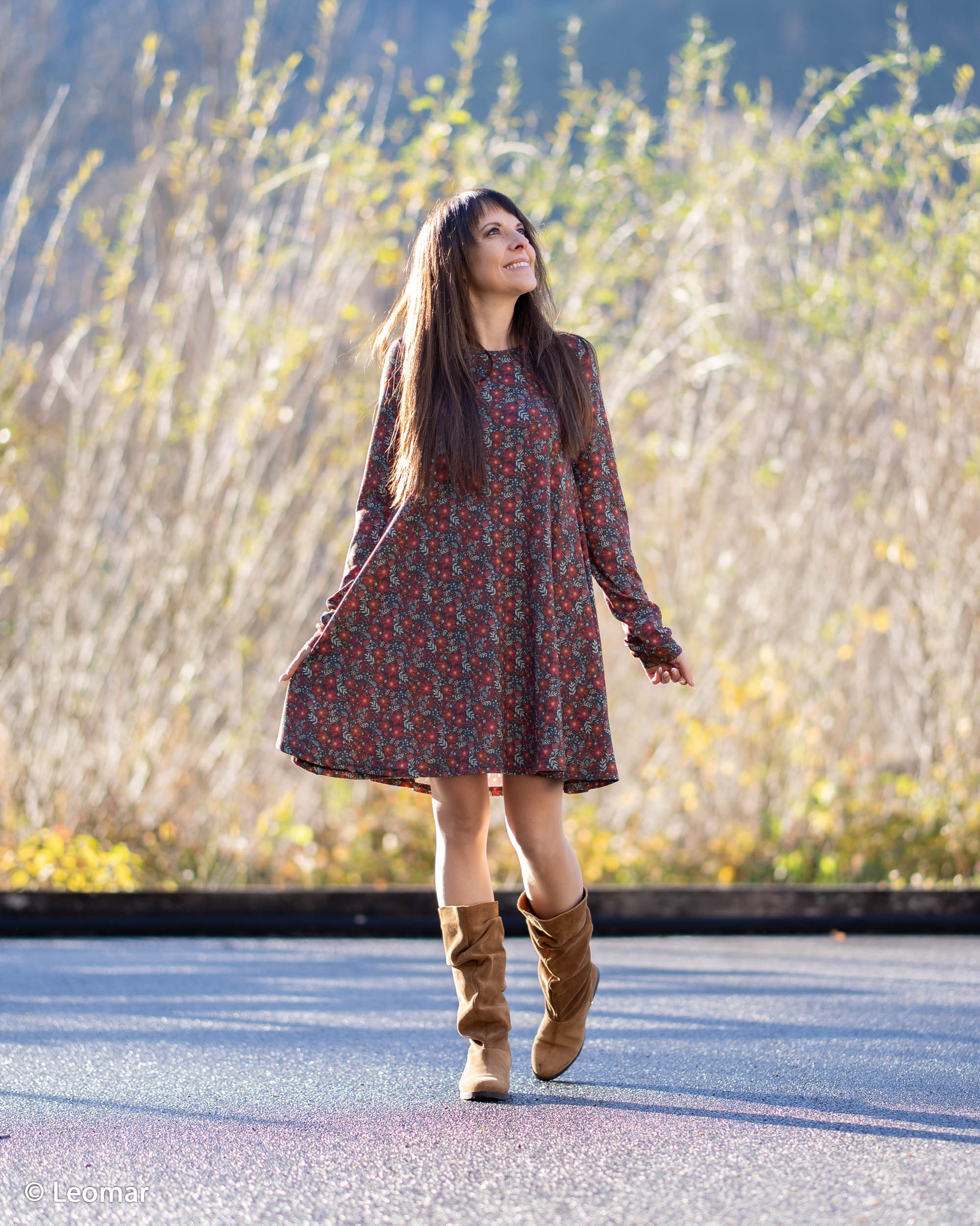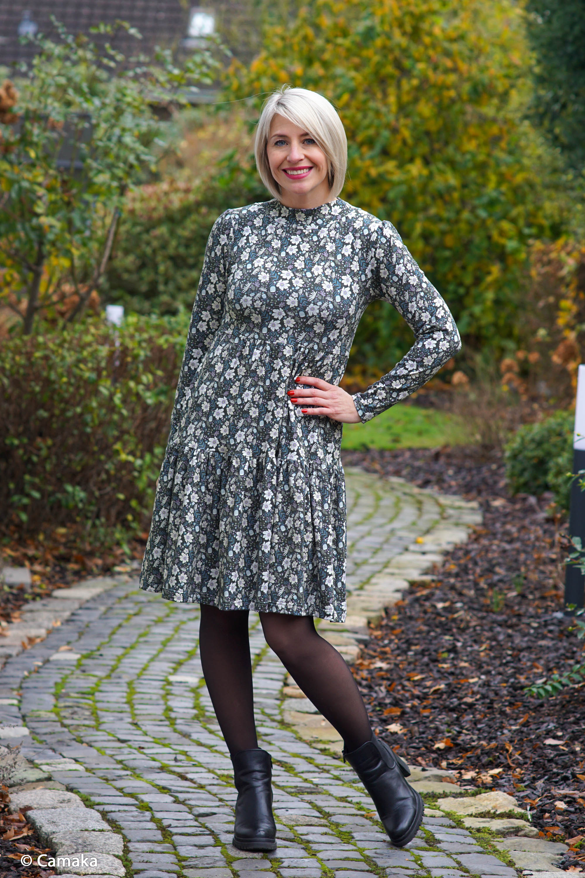 790713 Flowers, anthracite grey/bruscetta