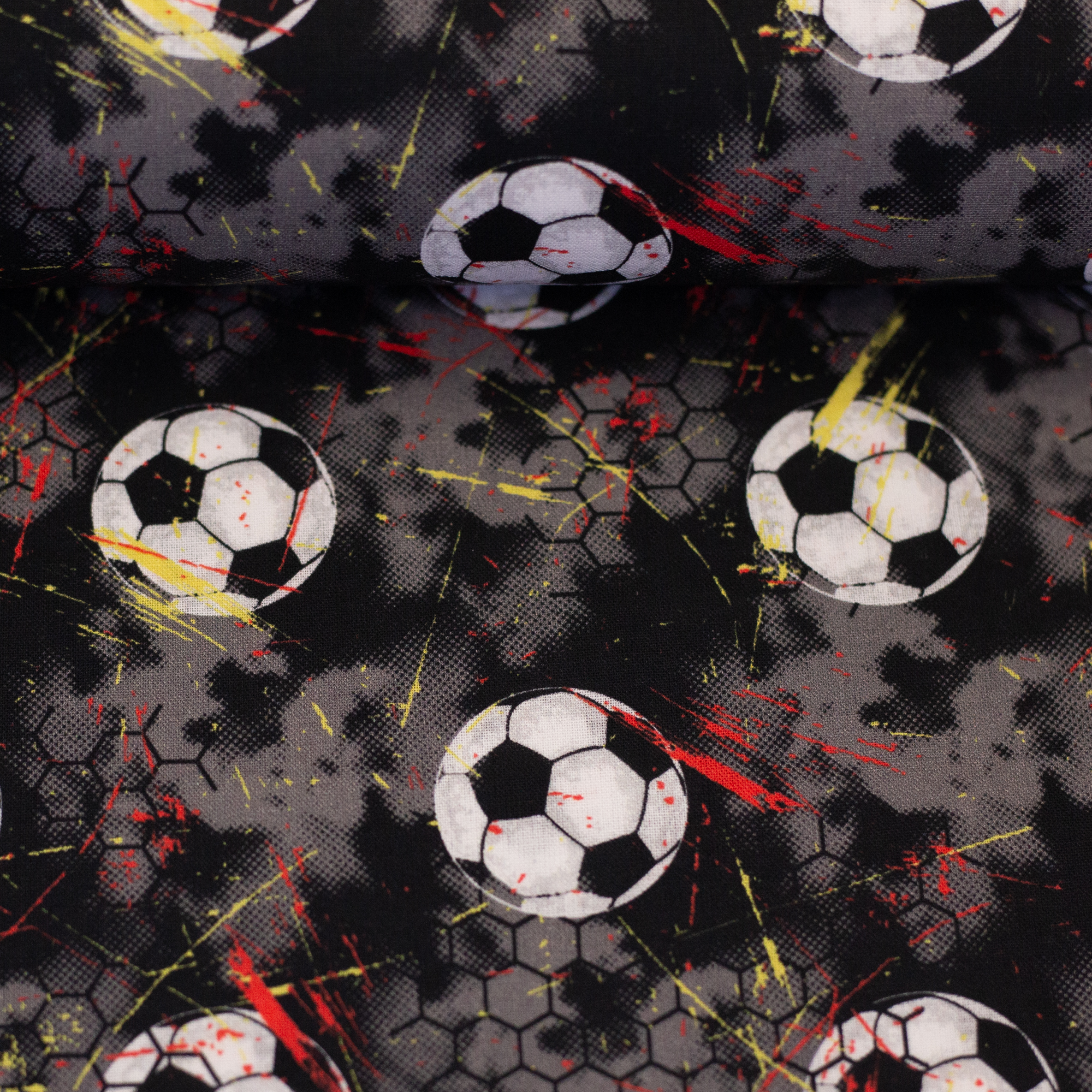 Die Kollektion zeigt verschiedene Fussballmotive von klassischen schwarz-weißen Bällen über