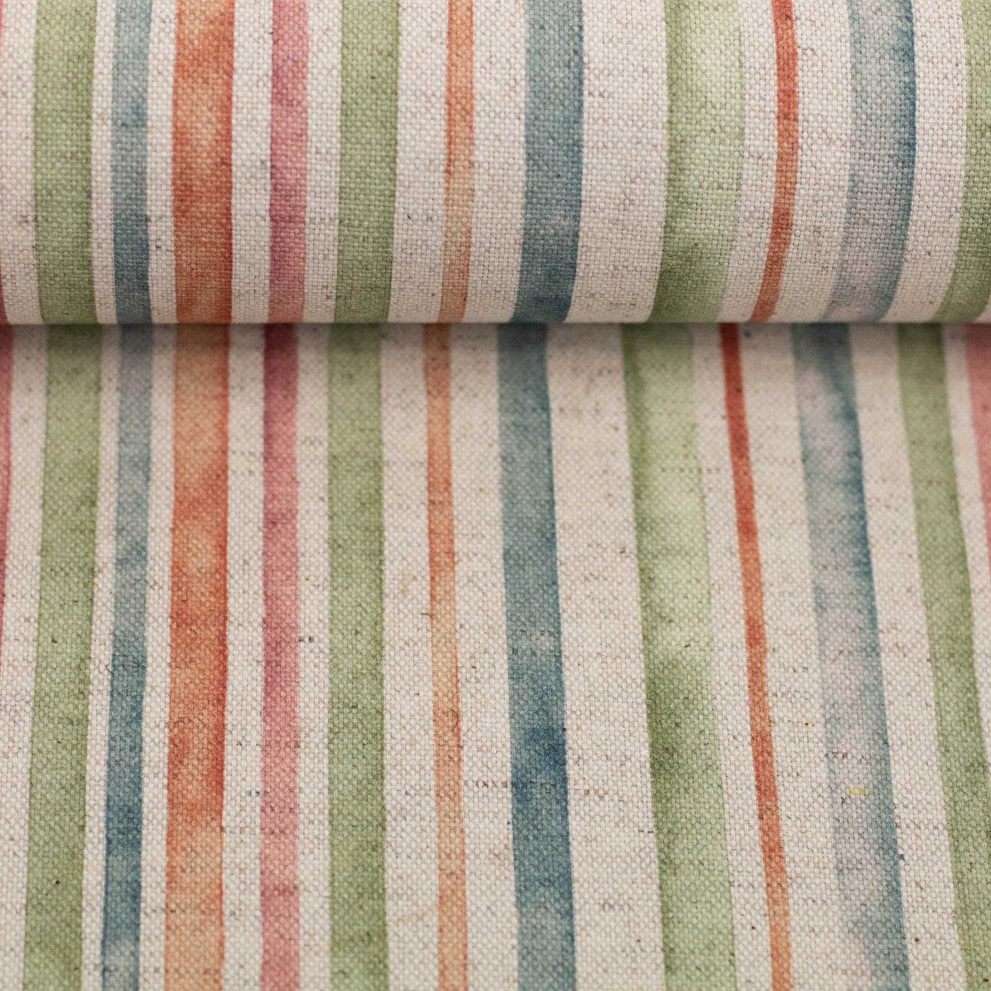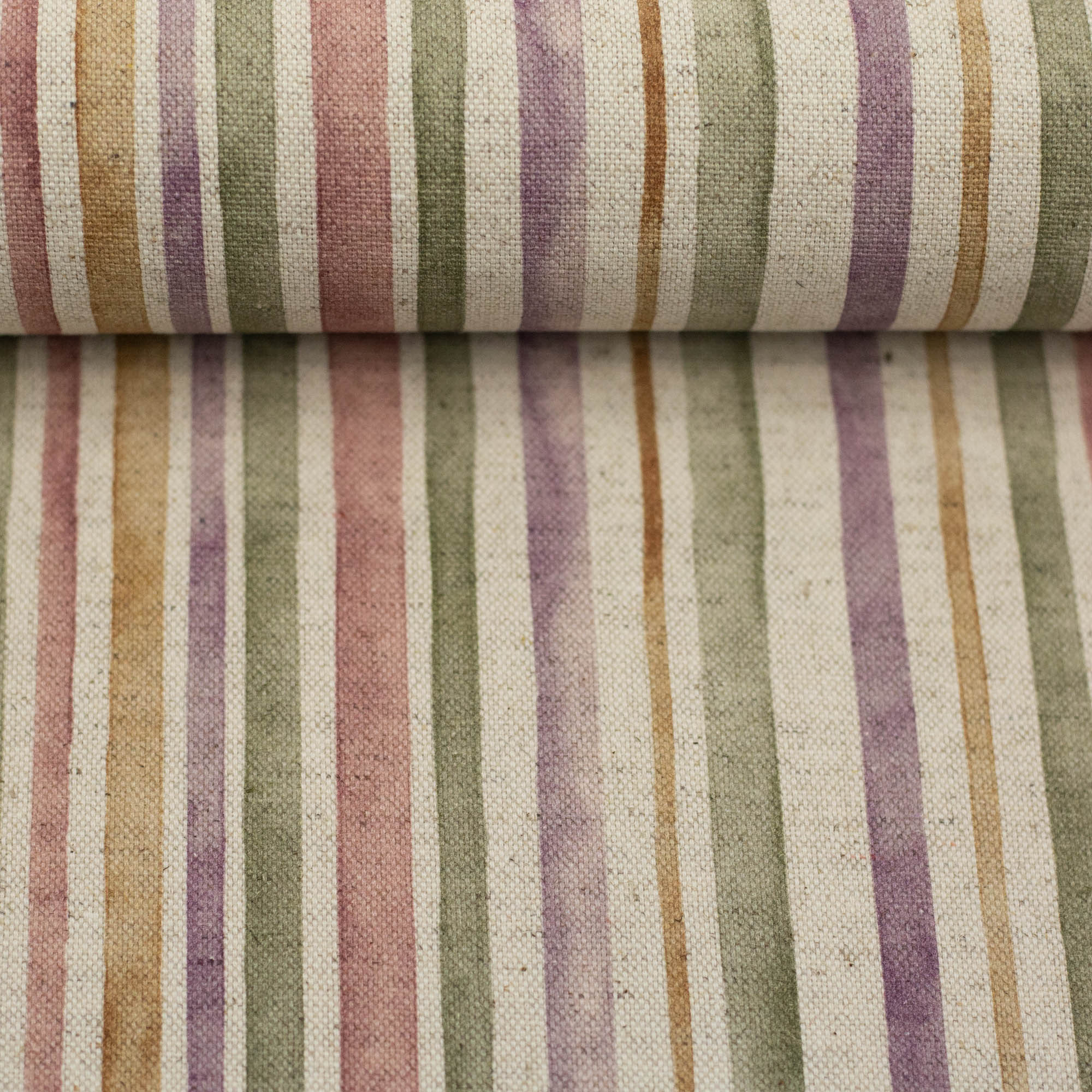 Florale Motive und moderne Streifen in harmonischen Naturfarben auf Baumwolle-Leinen Dekostoff Linea