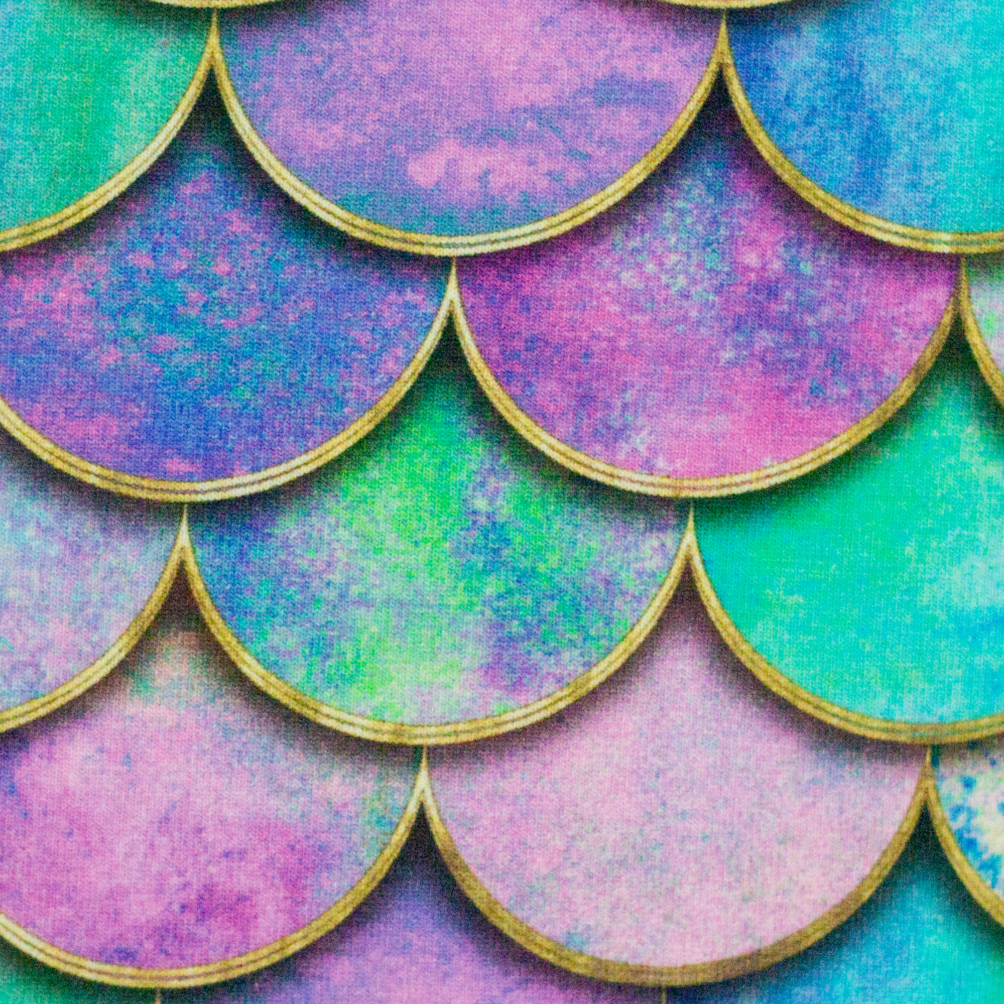 Die Schuppen-Designs lassen viel Raum für Fantasie. Ob Meerjungfrauenflosse, Fischschuppen oder Drachenschuppen – die Interpretation bleibt ganz dem Projekt überlassen. Das Muster ist gleichmäßig aufgebaut und wirkt trotz seiner Detailtiefe ruhig und harmonisch. Erhältlich in einer größeren und einer kleineren Schuppenvariante, lassen sich unterschiedliche Effekte erzielen oder Designs bewusst miteinander kombinieren. Changierende Farbverläufe in Türkis-, Grün-, Lila- und Blautönen verleihen Tiefe und eine leicht magische Anmutung, ohne unruhig zu wirken.